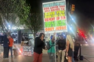 体育资讯4月5日讯 之前艾维因发表不当言论被公牛裁掉,之后他在直播中各种宣讲耶稣基督。近日他被网友拍到在某街头布道。