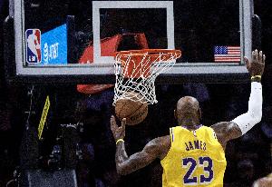 第三节,湖人继续建立领先优势,他们单节25-18赢了7分,三节打完以75-66领先9分。