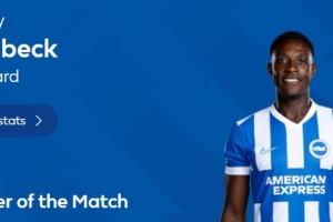 本场比赛布莱顿35岁前锋维尔贝克梅开二度,赛后他也当选英超官方评选出的本场比赛最佳球员。